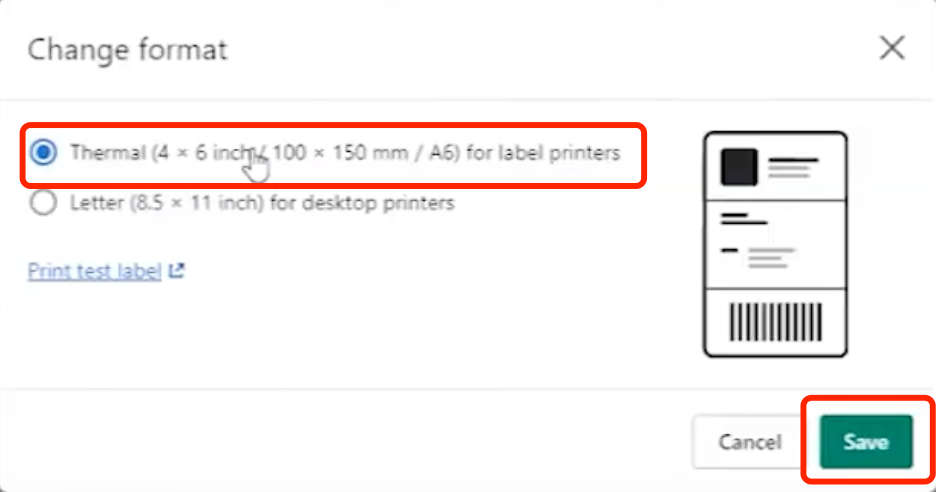 4. Click 'Change Format' to modify the size of the shipping label.