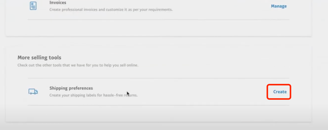 3. Look for ‘Shipping Preferences',then click 'Create'.