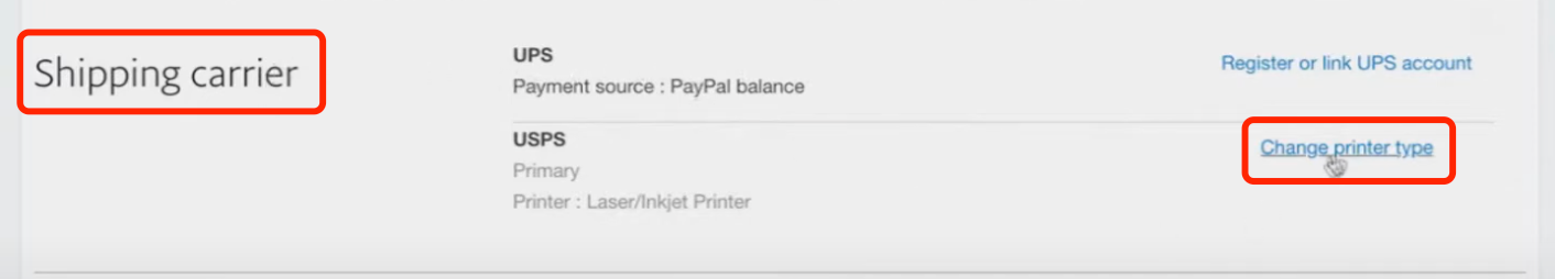 4. Under ‘Shipping Carrier’ Click ‘Change printer type’