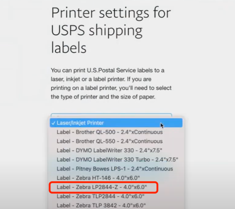 5. In the next window,select Label - Zebra LP2844-Z - 4x6"and save.