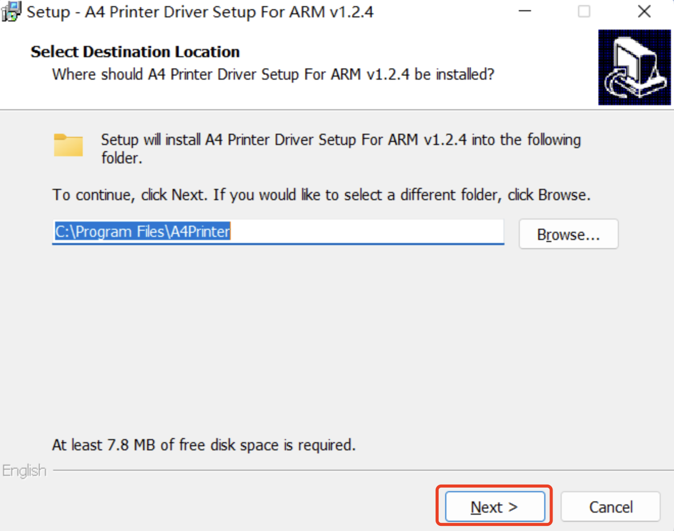 6.Unzip download file and run "Label Printer Driver Setup For ARM v1.1.0.exe", follow below steps to finish installtion.