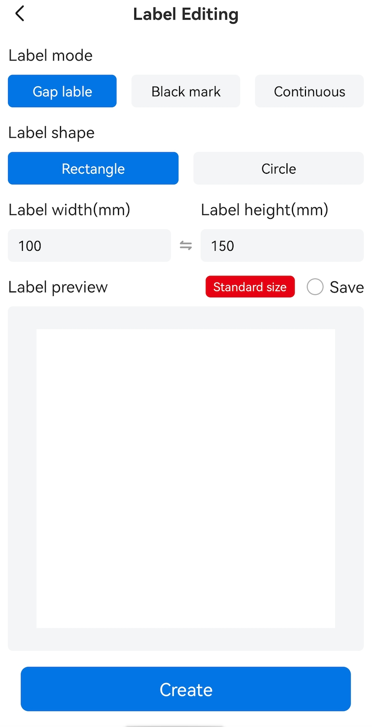 4. Setelah disambungkan dengan berjaya, anda akan kembali secara automatik ke halaman utama, dan ikon di sudut kanan atas akan berubah dari merah ke biru. Klik "New Label" di halaman utama untuk mencetak kandungan label secara automatik.