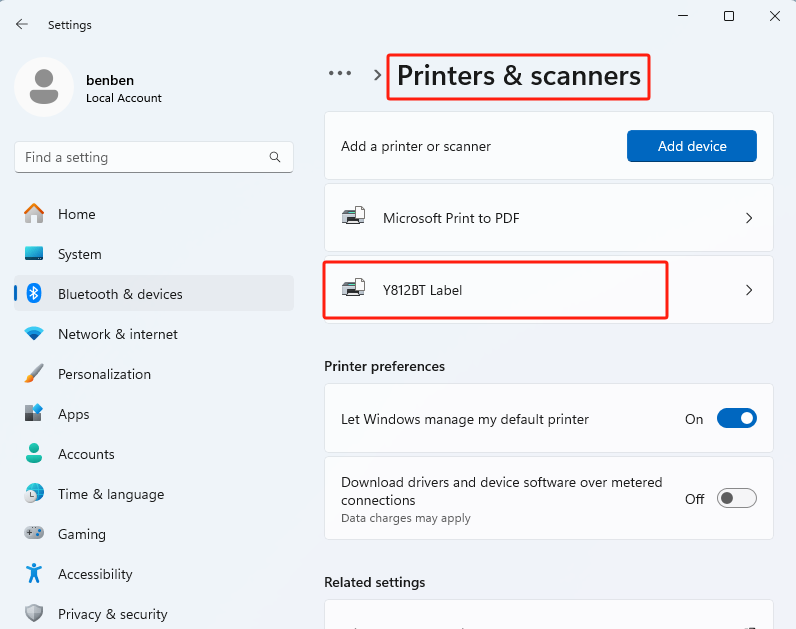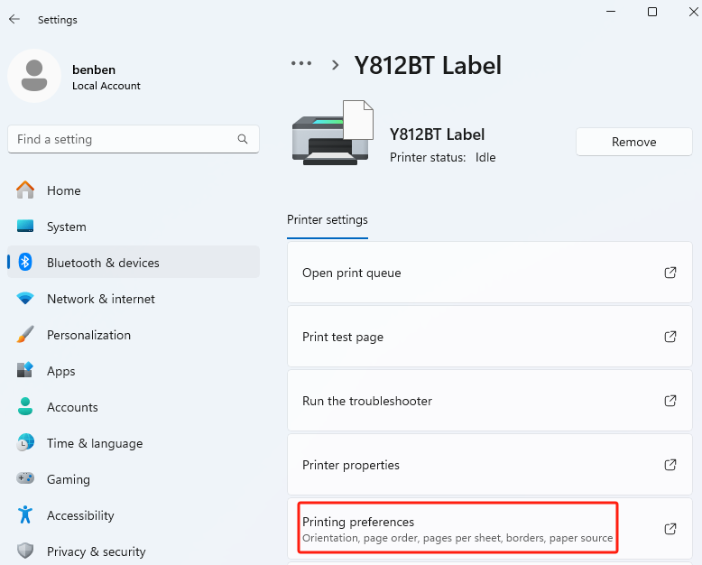 Prerequisite: The Windows driver has been installed, and the printer has been added.